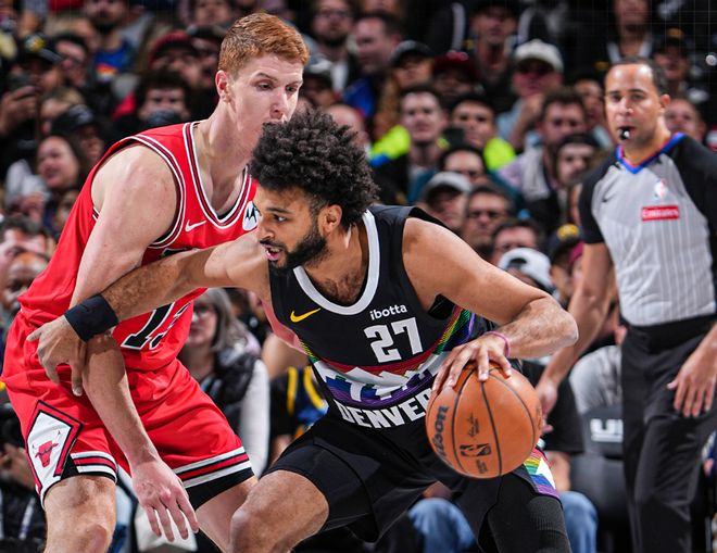 输开拓者一战,掘金替补被开拓者按着打,开拓者替补格兰特和穆雷火力全开,而穆雷带领替补阵容,没有组织进攻没有篮板球,失误不断。和公牛一战也是如此,约基奇带队首发一直赢分,穆雷虽然砍下34分,但带替补阵容一团糟,布朗0分+小哈达威4分+皮克特3分+瓦兰2分,他们让公牛替补拿到66分!而十几场的样本下来,虽然掘金替补瓦兰+布朗+小哈达威三人场均有26分的输出,但掘金衔接段没人持球。两个尴尬的数据,约基奇在场时,掘金助攻率比均值高6.5%,不在场时比均值低7.9%。