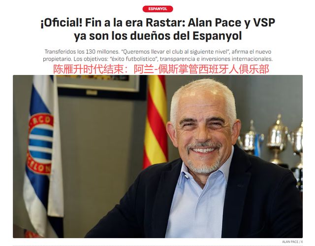 西班牙人俱乐部的新老板阿兰-佩斯,英超球迷不会陌生。