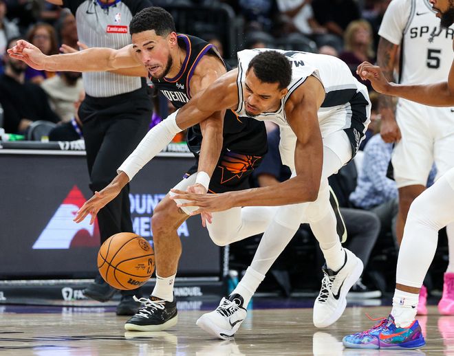 太阳130-118送马刺赛季首败,布克28+13,文班亚马仅得9分